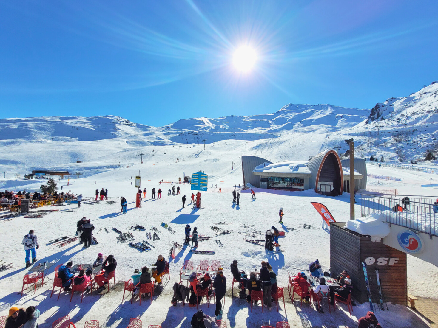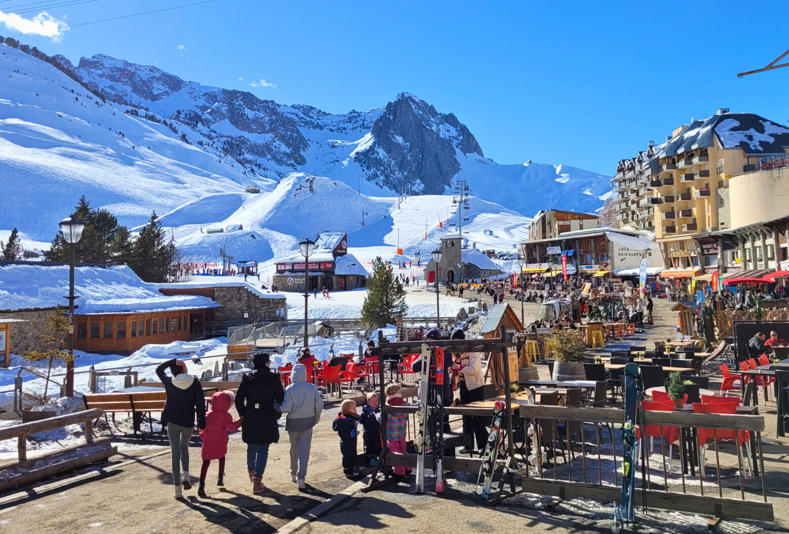 La zona de Haute-Garonne de Peyragudes es especialmente popular entre los peatones gracias a su fácil acceso a las terrazas. Aquí, no se necesitan telesillas para sumergirse en el ambiente de la estación y disfrutar del sol con vistas a las pistas.