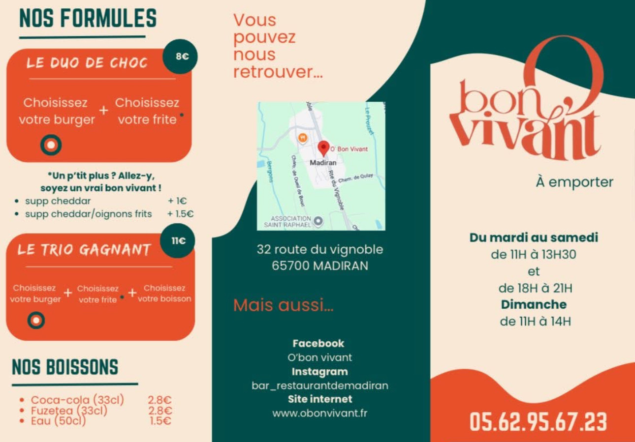 O' Bon Vivant, un bar-restaurante abierto todo el día en Madiran